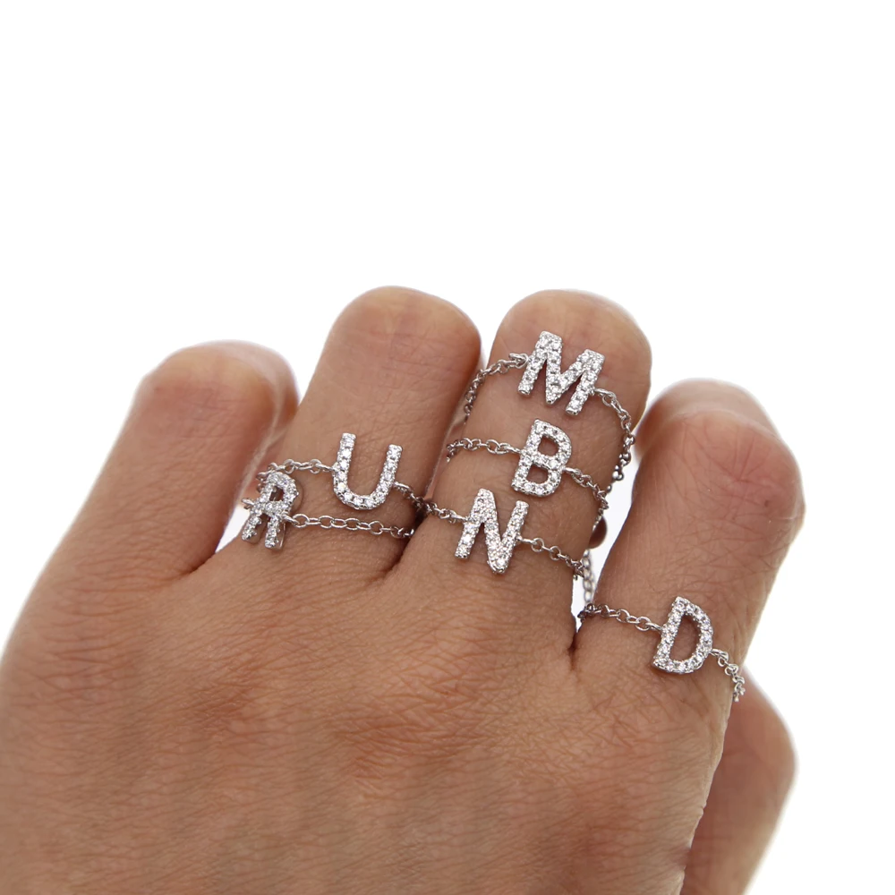 Name: Alpebet-abalorio con letras micro pavé cz, cadena de eslabones de alta calidad, diseño más reciente, anillo de cadena minimalista de oro