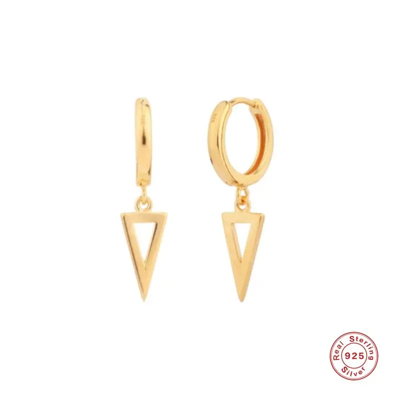 Name: Ayudante 100% Plata de Ley 925 Zircon pendiente geométrico triangular aro Pendientes para las mujeres personalidad Pendientes de botón Pendientes Brincos