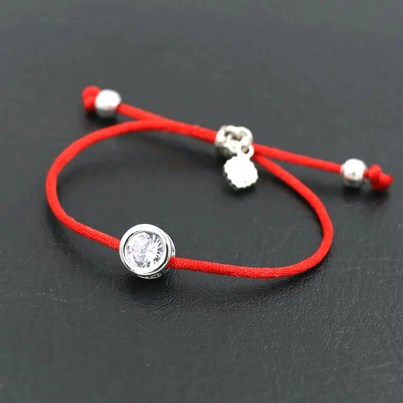 Name: BPPCCR-pulsera de circonia cúbica para mujer, con diamantes de imitación redondos brillantes, pulsera de hilo de cuerda roja trenzada, pulseras de la suerte, Color plata
