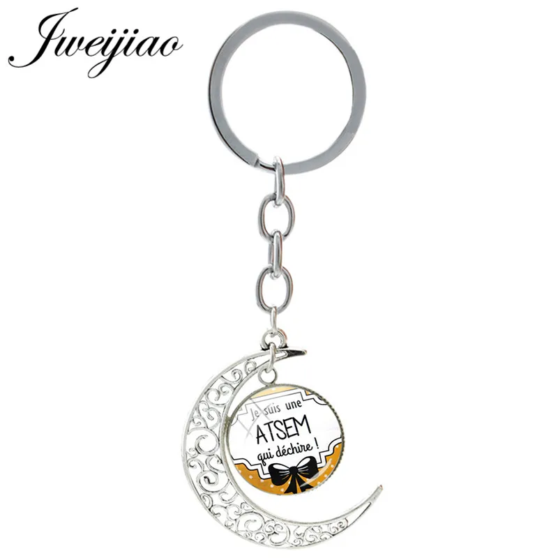 Name: JWEIJIAO-abalorio francés con forma de luna, llaveros colgantes, joyería cabujón de cristal JE24
