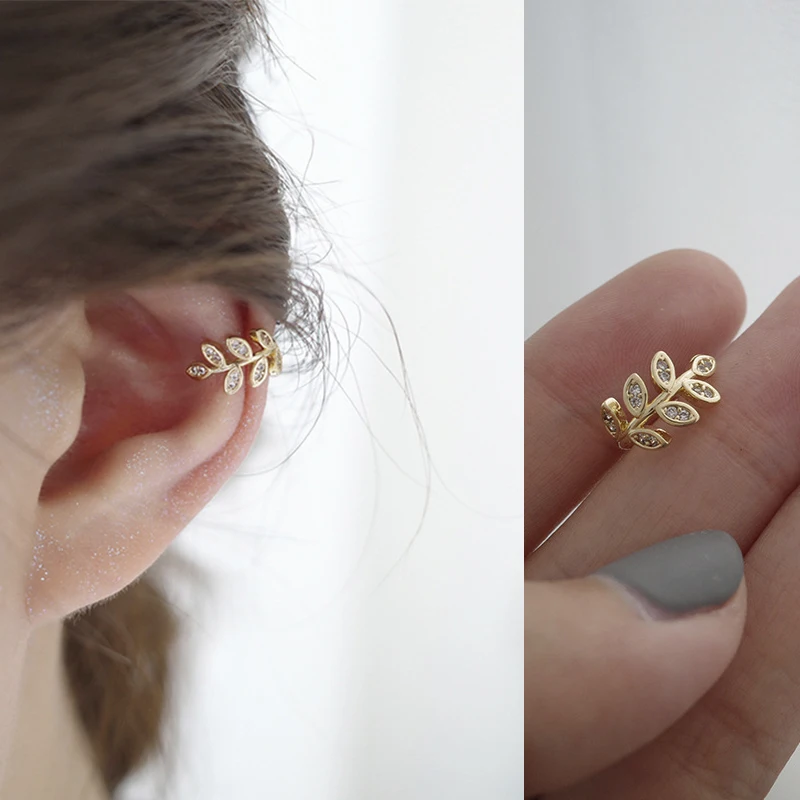 Name: Pendiente de hoja de oro para mujer, 1 Uds., Clip de circonio encantador, pendiente de oreja de oro sin Piercing, joyería